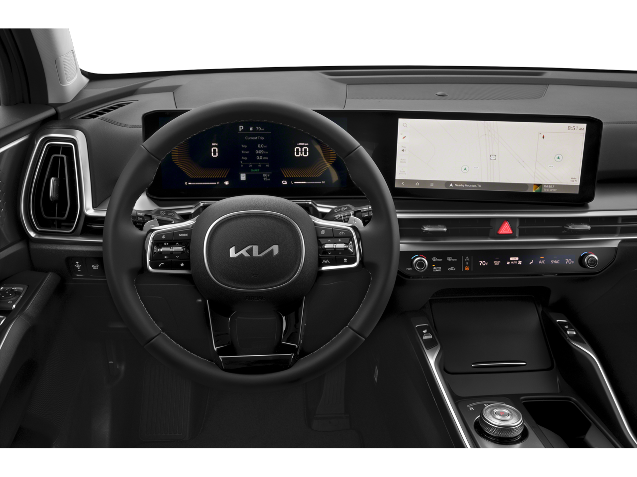 • Radio: AM/FM/SiriusXM Audio System -inc: 12.3" ccNc touchscreen, HD Radio, modem, navigation, over-the-air updates, Kia Connect, Wi-Fi hot spot, 6 speakers, Bluetooth®, voice recognition, wireless Apple CarPlay, wireless Android Auto and USB connectivity