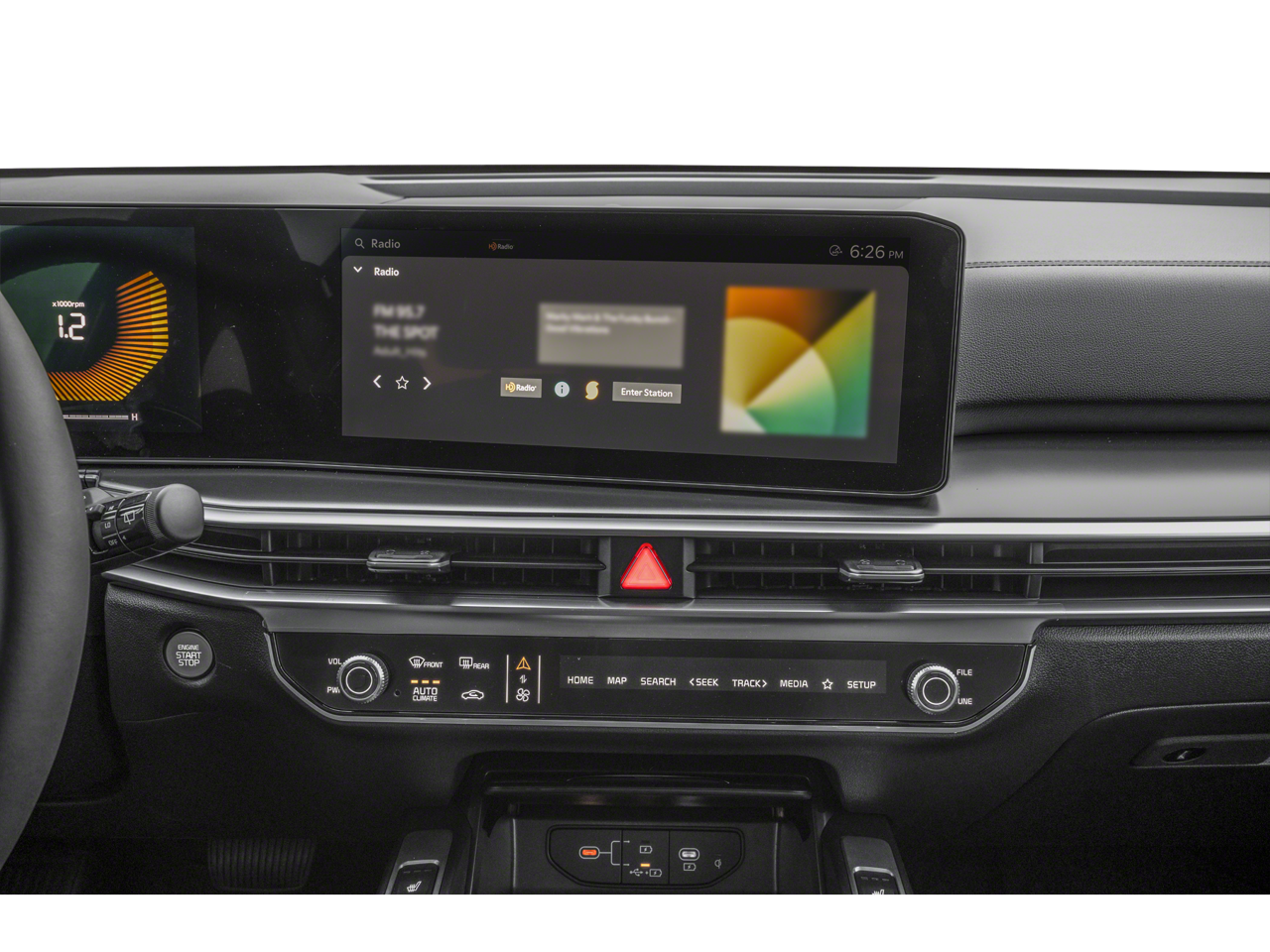 - Radio: AM/FM/SiriusXM Audio System -inc: 12.3" ccNc touchscreen, HD Radio, modem, navigation, over-the-air updates, Kia Connect, Wi-Fi hot spot, 6 speakers, Bluetooth®, voice recognition, wireless Apple CarPlay, wireless Android Auto and USB connectivity