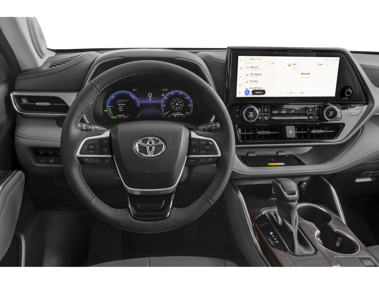 Step inside the Highlander Hybrid Platinum and be captivated by the premium leather seating, heated and ventilated front seats, and a panoramic moonroof that floods the cabin with natural light. The 12.3-inch Toyota Audio Multimedia system with JBL Premium audio provides an immersive entertainment experience, while the Heads-Up Display and Digital Rearview Mirror keep you informed and aware.
